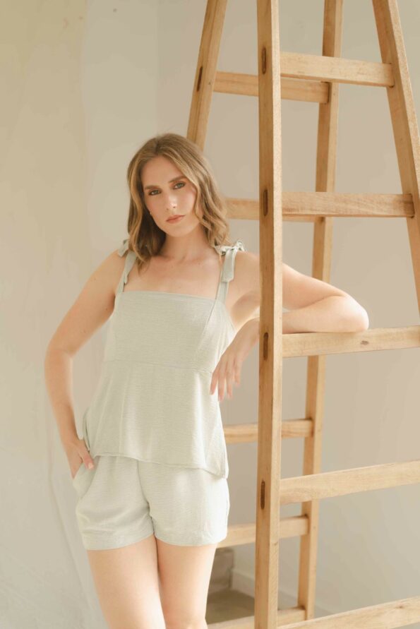 Blusa solera con escote recto y tiras que se atan como más te guste. En este color que es un must have de esta temporada, y queda hermoso!
