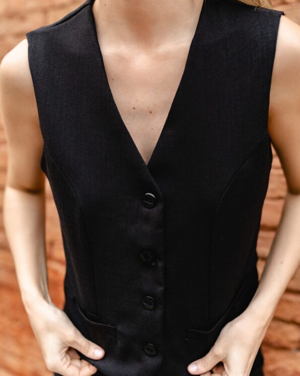 ¡La prenda básica que necesitas tener en tu armario! En el clásico negro que podés combinar con cualquier prenda. Hace match con el pantalón Flavia lino negro.