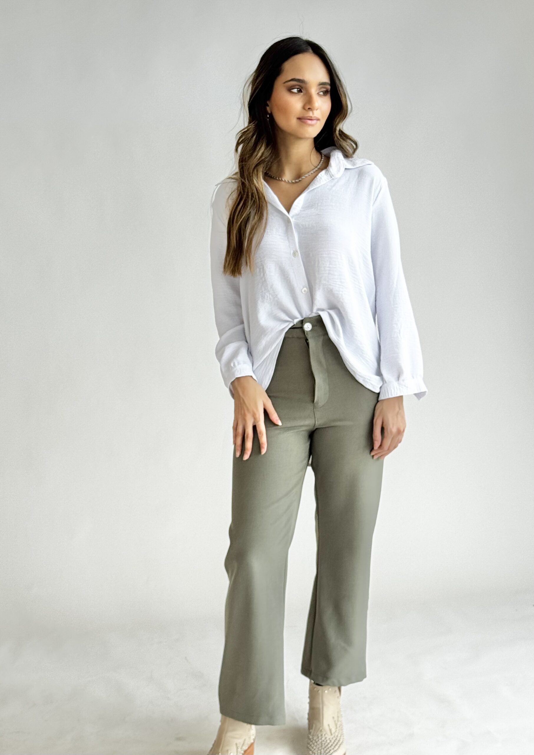 Amamos este pantalón, es perfecto para tu día a día o también para salir. Pantalón con cierre y botones, bolsillos traseros.