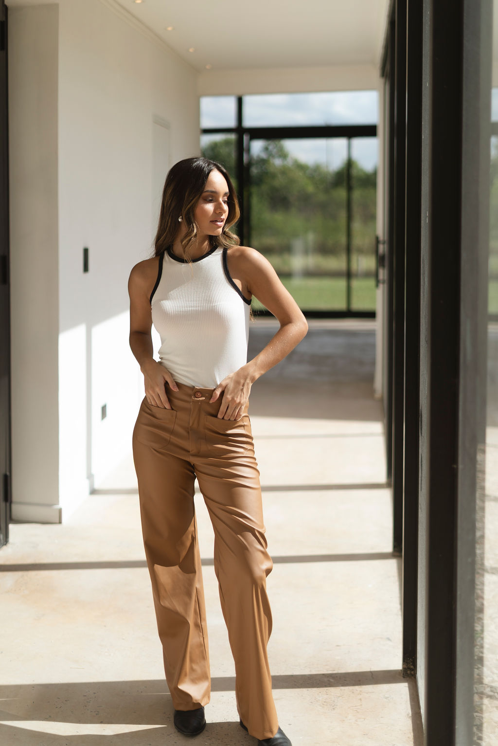 El Pantalón Luana Eco cuero es ideal para cualquier evento. Pantalón con cierre, bolsillos frontales y trasero.