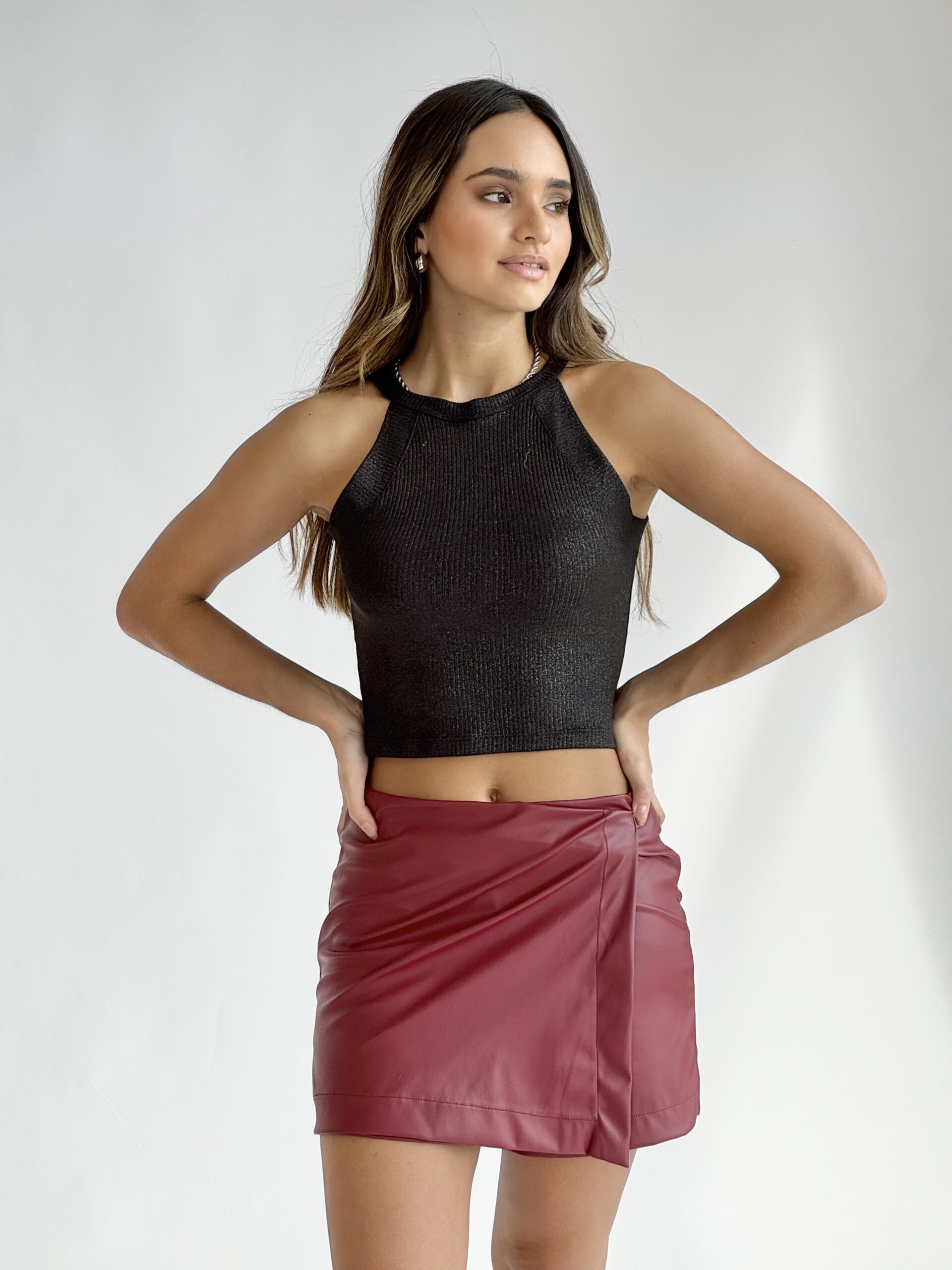 Short Pollera de Eco cuero con cierre invisible al costado.