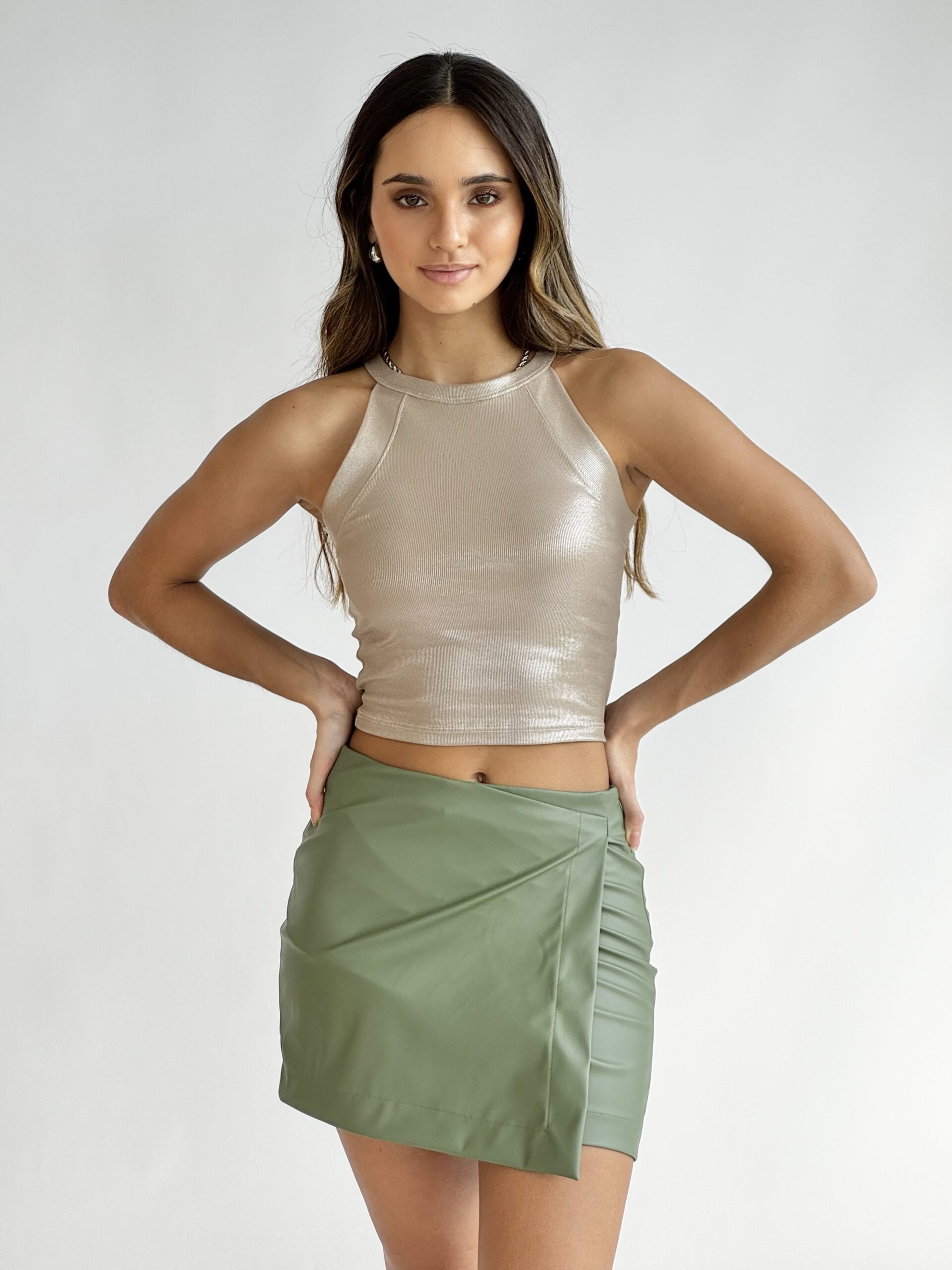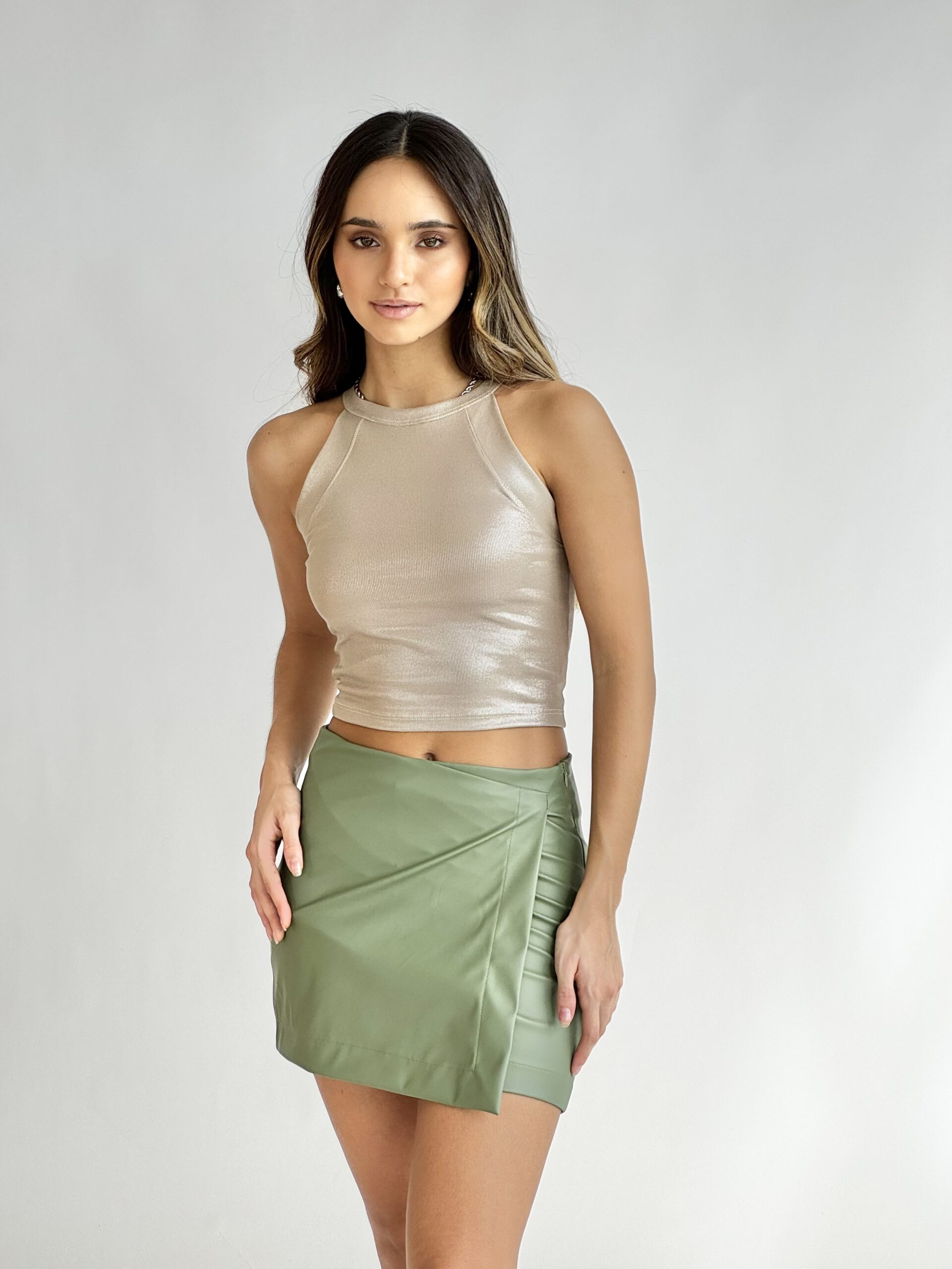 Short Pollera de Eco cuero con cierre invisible al costado.